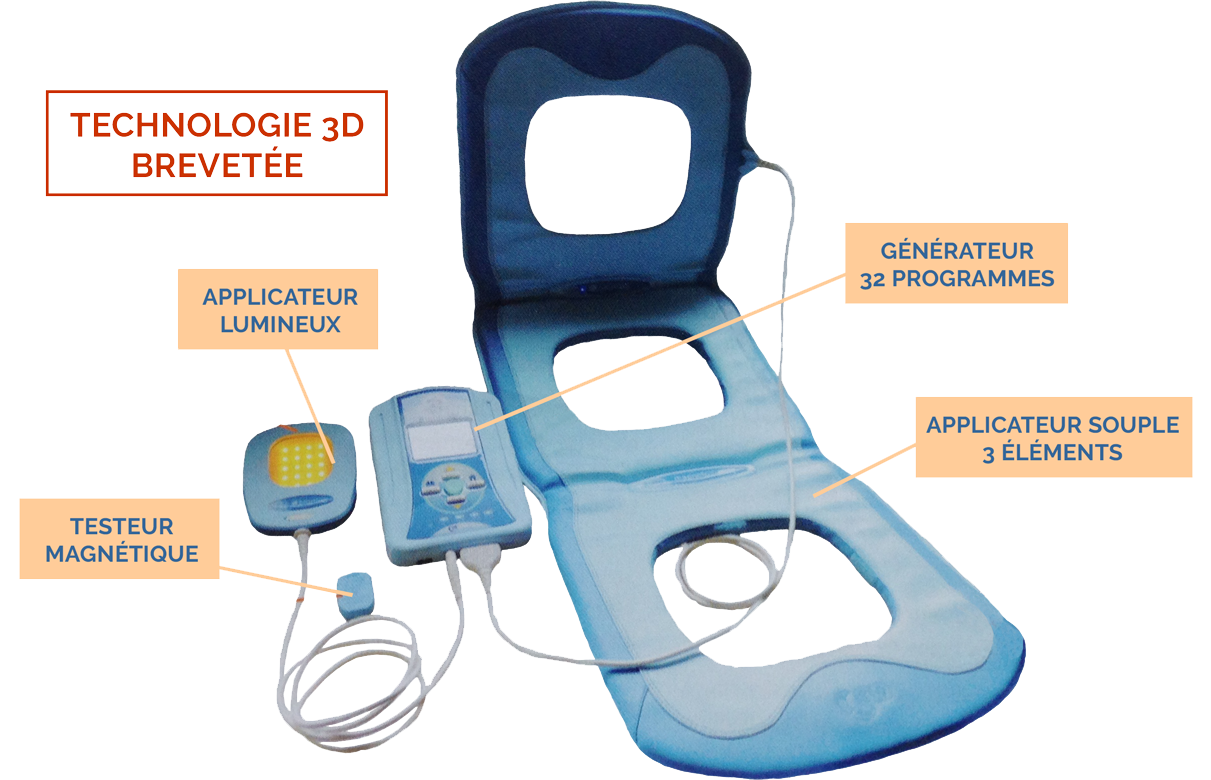 Les générateurs de champs magnétiques pulsés (CMP) sont utilisés depuis longtemps aux USA, au Japon, en Russie et en Allemagne dans le traitement de pathologies diverses (pseudoarthroses, décalcifications osseuses, ostéoporoses, troubles neurovégétatifs, dépression nerveuse, troubles du sommeil, régénérations de tissus cicatriciels...)