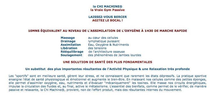 Vous êtes allongés sur une couchette mobile, des guêtres relient vos pieds à un pédalier motorisé induisant une traction lente et douce. Le corps entier est étiré mettant en jeu les chaînes musculaires profondes et superficielles.